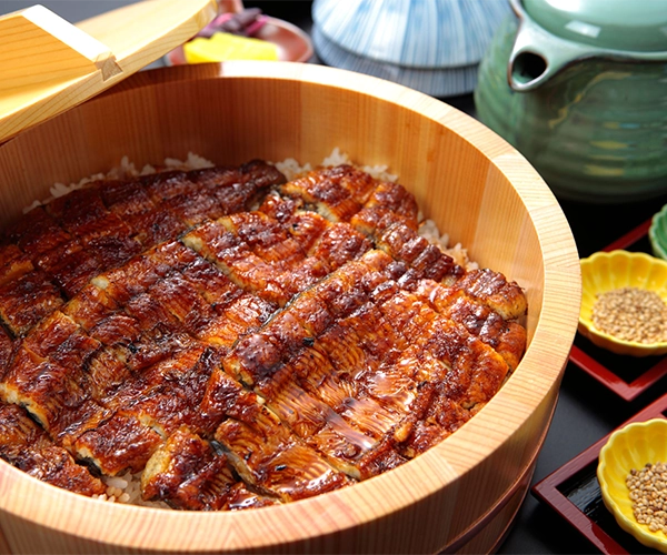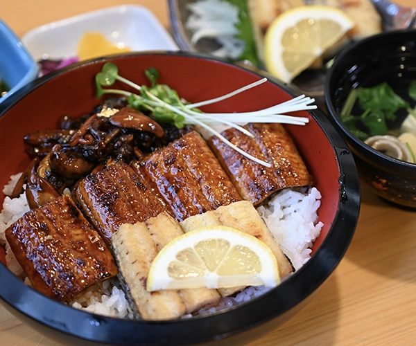 『おひつまぶし』では、ネギや山葵などの薬味に加え、梅や青しそをトッピングした爽やかな食べ合わせや、〆のお茶漬けなど、さまざまな味の変化がお楽しみ頂けます。