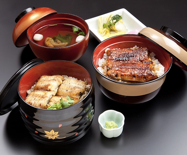 自慢のタレでじっくりと焼き上げた「蒲焼きの小丼」と、岩塩や出汁醤油で食す「白焼きの小丼」の両方の味が楽しめる『二食小丼』が一番人気!